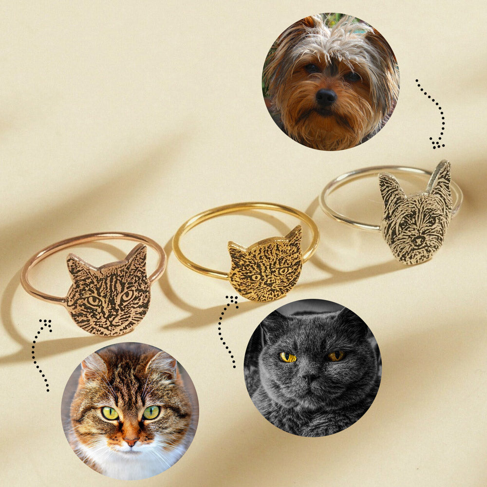 - Carry your furry friend with you everywhere you go with our Custom Pet Portrait Ring. Each piece is beautifully crafted from your pet’s photo — capturing every adorable detail in a timeless, wearable keepsake.