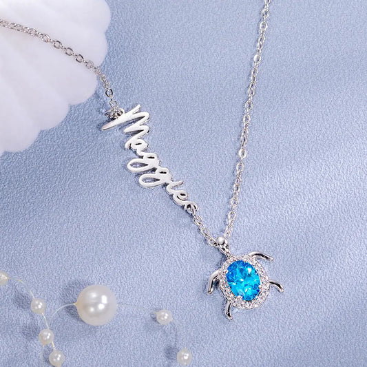 Custom Sideways Name Sea Turtle birthstone necklaces | Sterling Silver 925 turtle charm necklace