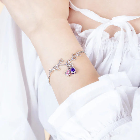 Custom Family Tree Birthstone Bracelet | 925 Sterling Silver Birth Month Stone Bracelet