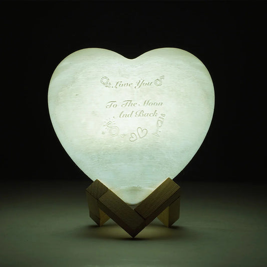3D Printed Heart Shaped Moon Lamp Personalized with Text & Photo| Custom love gifts