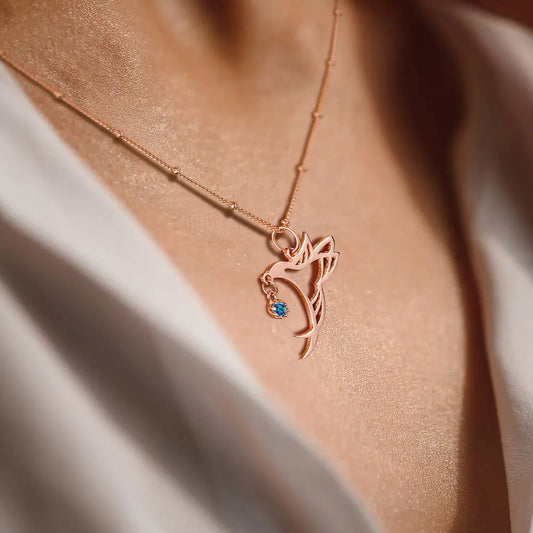 Custom Dainty Birthstone Hummingbird Necklace |Sterling Silver Hummingbird Necklace