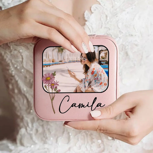 Custom Jewelry Travel Case | Photo Jewelry Case| Custom Birth Flower & Name Jewelry Box