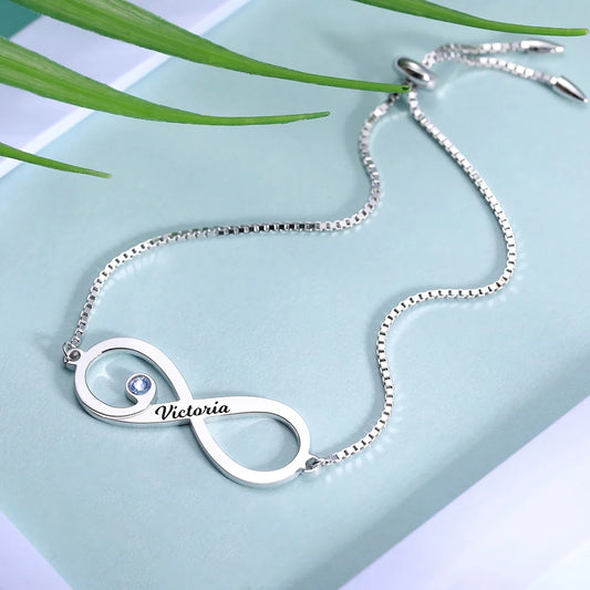 Personalized Infinity Bracelet for Her with Birthstones | 925 Sterling Silver infinity bracelet