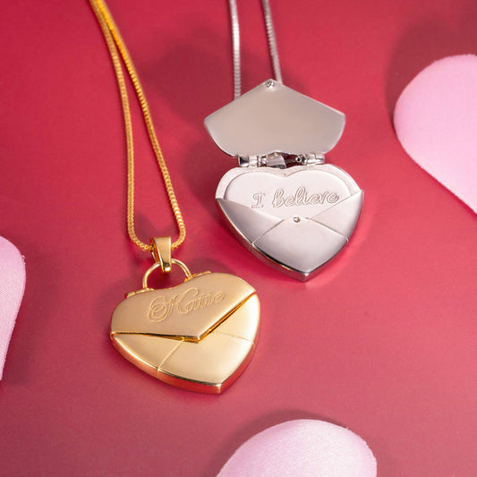Personalized Secret Message Envelope Heart Locket Necklace