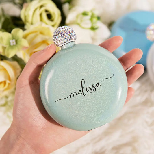 Custom Round Flasks with Rhinestone Lid | Best Friend, Bridesmaid Proposal