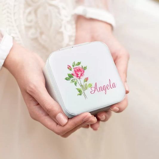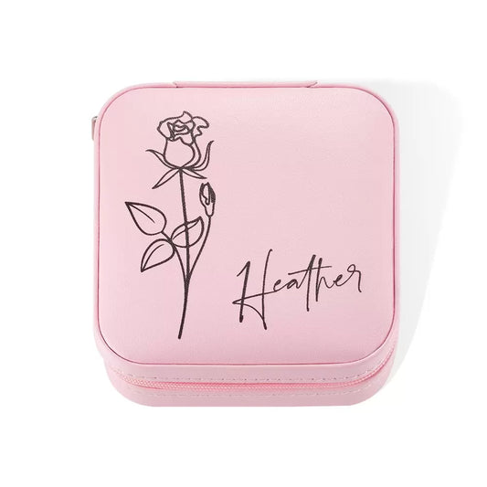 Vegan leather jewelry case ,Bridesmaid Proposal Gift,Bridal Party Gift,Birth Flower Jewelry Case