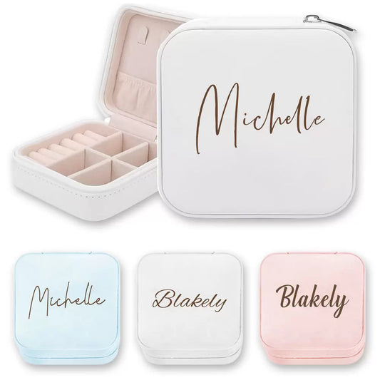 Custom Name Jewelry Box, Vegan Leather Jewelry Travel Case Organizer