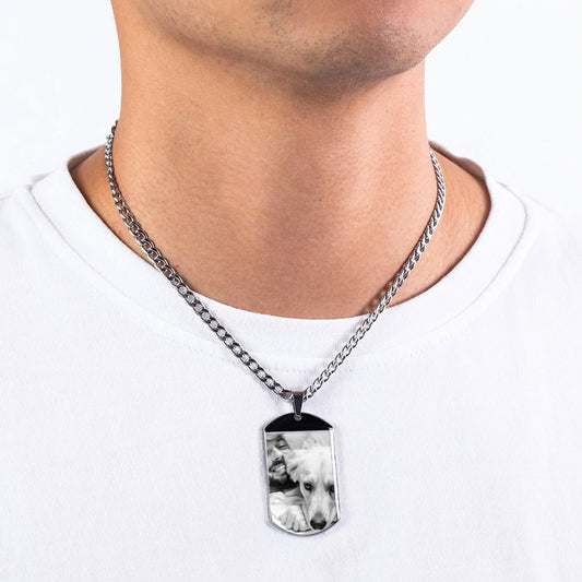 Custom Black & White Photo Black Titanium Steel Dog Tag Necklace