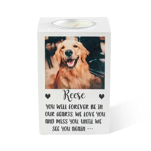 Custom Pet Sympathy Tea-light Candle holder with Pet Photo and Message