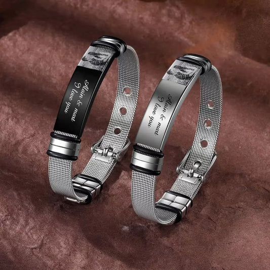 Custom bar engraved bracelets | Engraved Men's Chain Bracelet