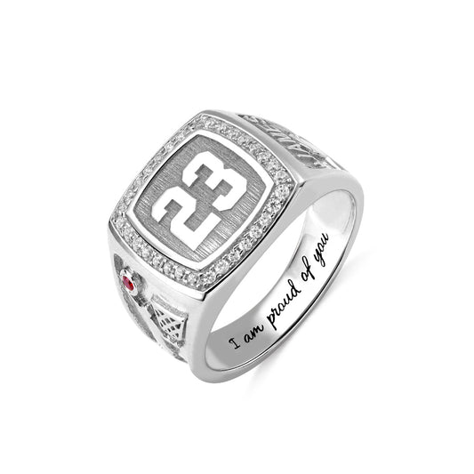 Personalized Football Ring with Birthstone and Engraving in Silver