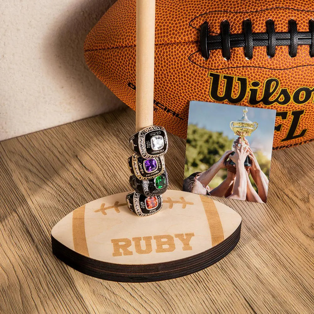 ♥ Crafted from high-quality wood, this custom display adds a personal touch to any room, making it an ideal gift for athletes and sports enthusiasts. Whether for a championship ring or a special memento, this display is a stylish way to honor your accomplishments.