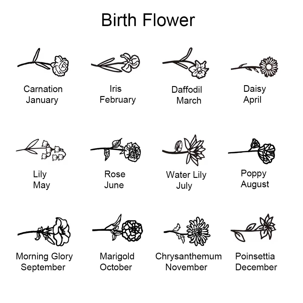 Each birth flower carries a rich history and deep meaning, making this ring more than just a piece of jewelry – it’s a token of thoughtfulness. From lilies representing purity to roses symbolizing love, these flowers are a heartfelt nod to someone’s birth month or unique personality. The option to add any name creates a truly personal piece, capturing their identity and special qualities in one timeless design.