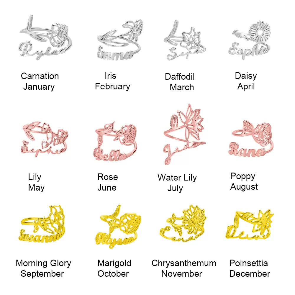 Custom birth flower ring with name