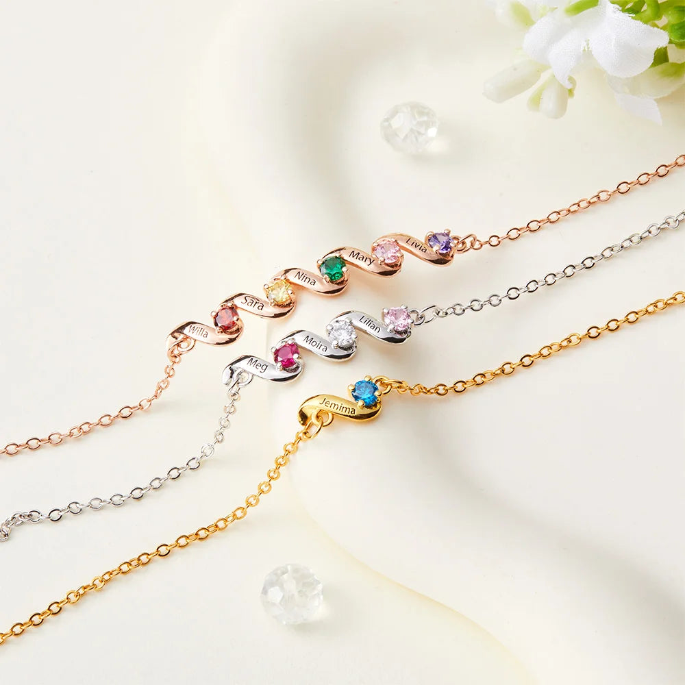 - Create a heartfelt keepsake with our Custom Birthstone Name Bracelet. This elegant piece can be personalized with multiple names and up to 6 sparkling birthstones, making it a meaningful way to honor loved ones.