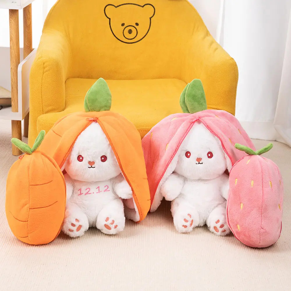 ♥ Featuring a Cute Design, this bunny comes with a charming surprise – a carrot bunny plush and strawberry bunny plush that magically transforms into a stuffed bunny with long ears ! It's a toy that promises endless fun and excitement for your little one.