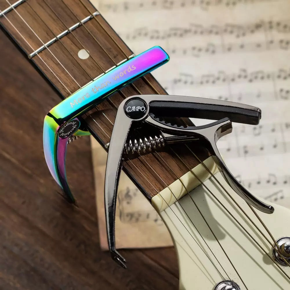 ♥ Achieve effortless style and impeccable sound with our Custom Guitar Capo. Crafted from premium metal in 6 luxurious colors, this capo offers precision and durability for any guitar.