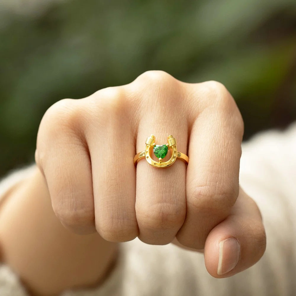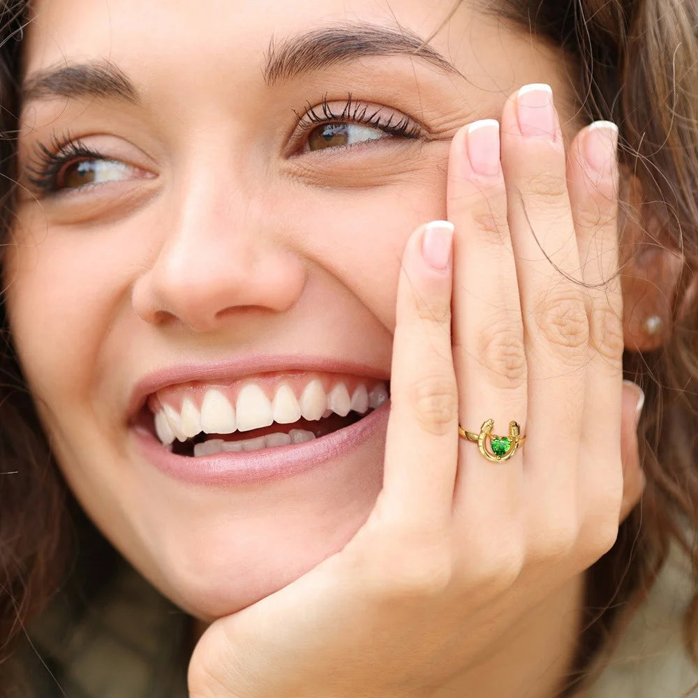 ♥ Bring luck, love, and personal touch together with our Custom Horseshoe Ring with Birthstone. This stunning piece features a heart-shaped birthstone pendant at its center, beautifully paired with a horseshoe design, a timeless symbol of luck and protection.