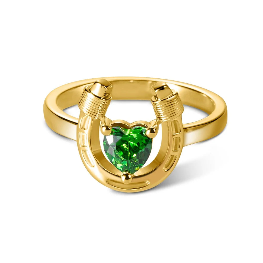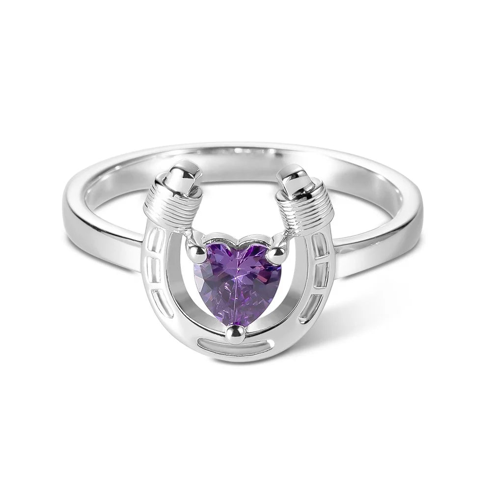 Custom Heart Birthstone Horseshoe Ring | Ladies Horseshoe Ring
