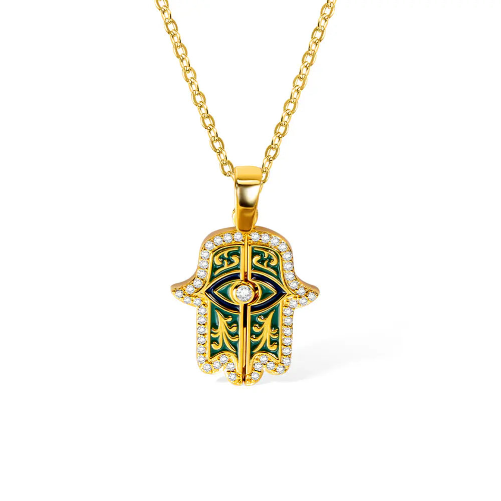 - Hamsa hand pendant: Symbolizes strength, resilience, and good luck.