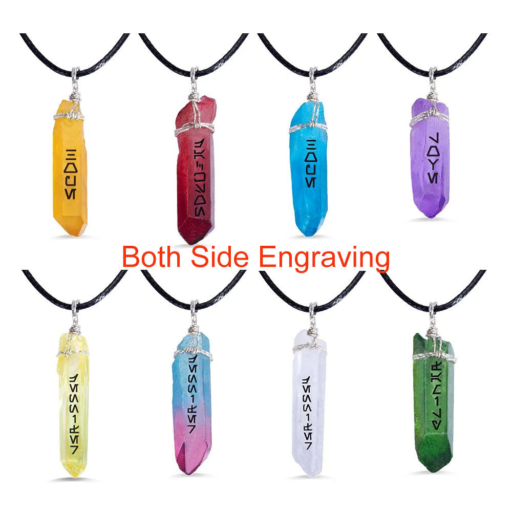 Unleash your inner Jedi with our one-of-a-kind Custom Kyber Crystal Necklace. This unique accessory allows you to personalize your own piece of the Star Wars universe by customizing the Aurebesh text—the iconic language of Star Wars—on both sides of the crystal.