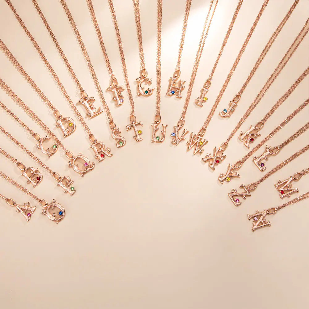 Style | Custom Initial Leaves Charm Necklace with Birthstone |