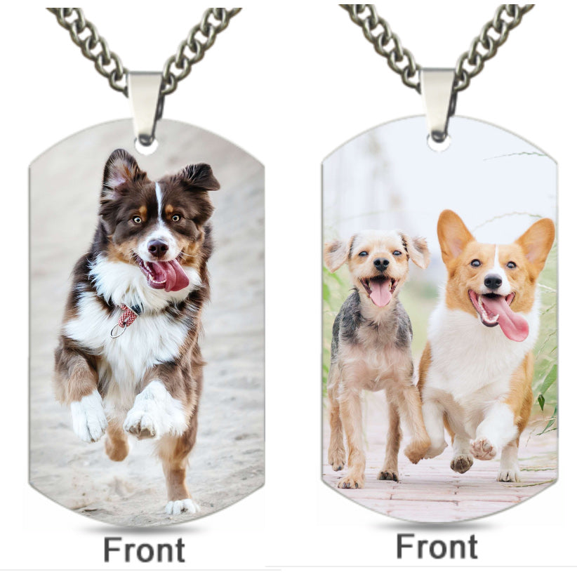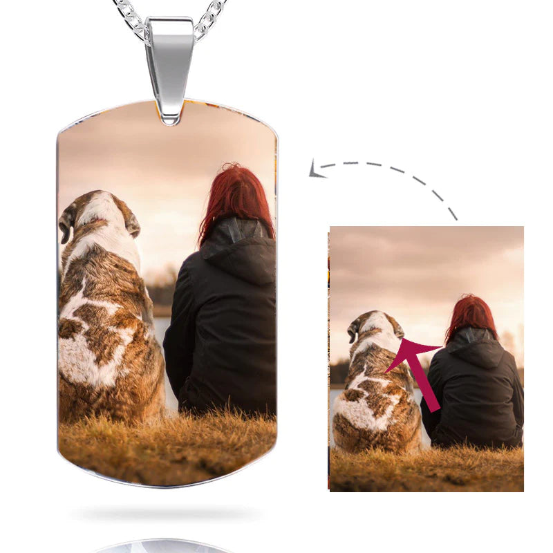 Our Dog Tag Memorial necklace is a tasteful tribute to a lost loved one. It's custom-made with your dog's photo, making each one unique and special.