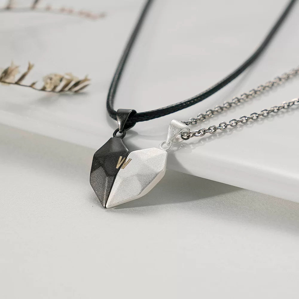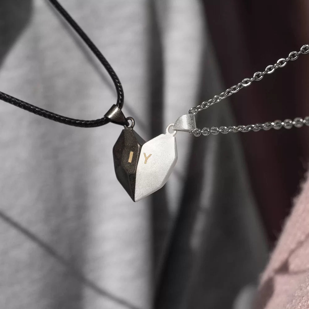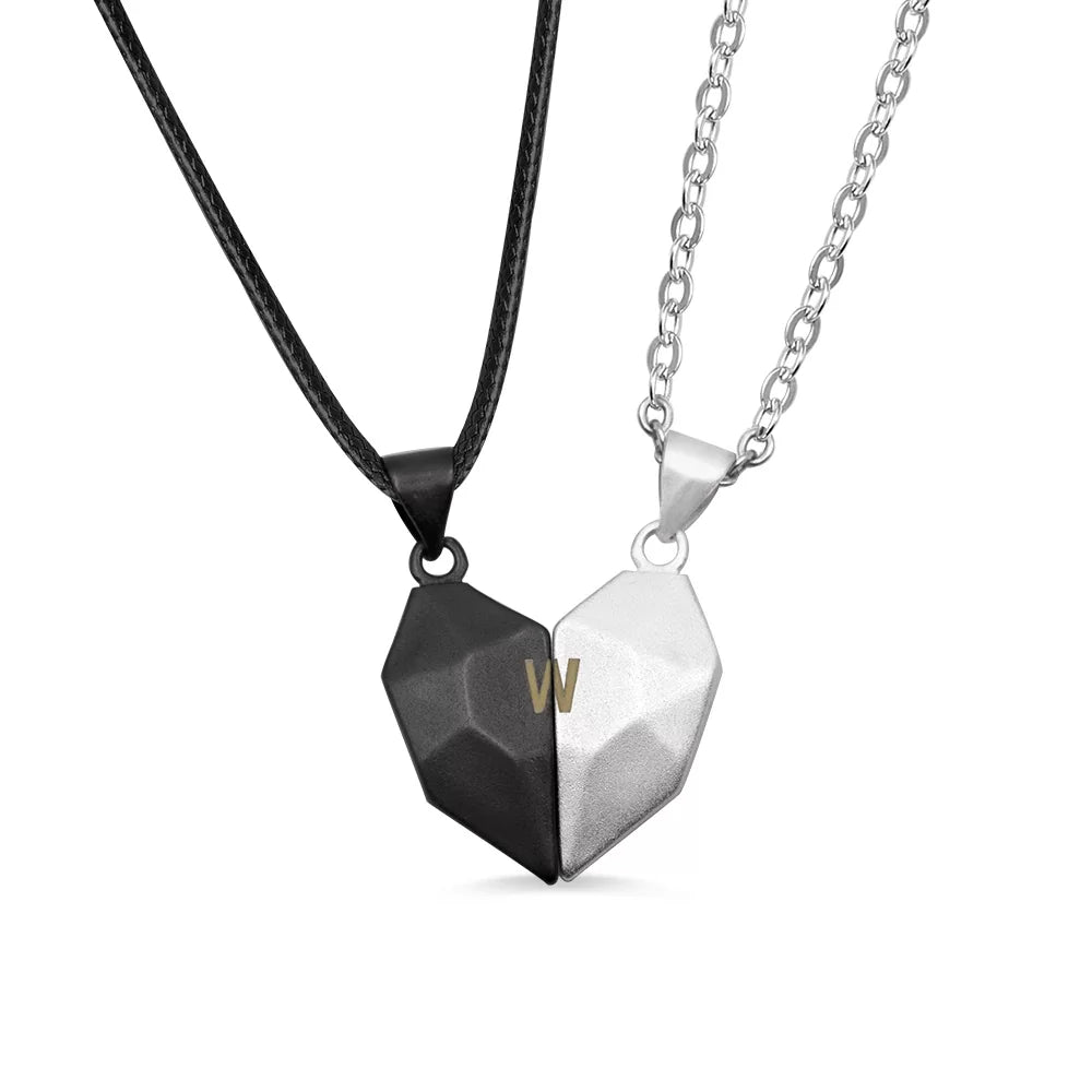 Personalized Magnetic Heart Necklace for couples | Set of 2 necklaces
