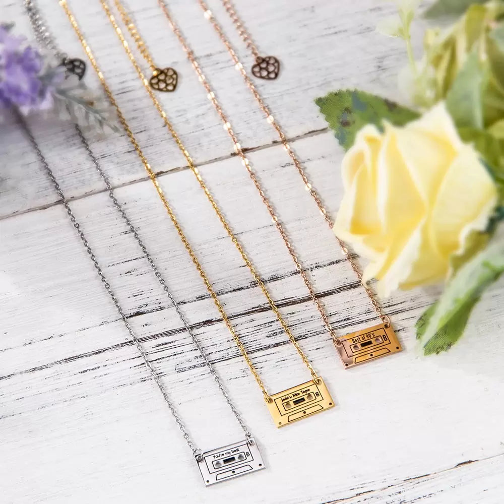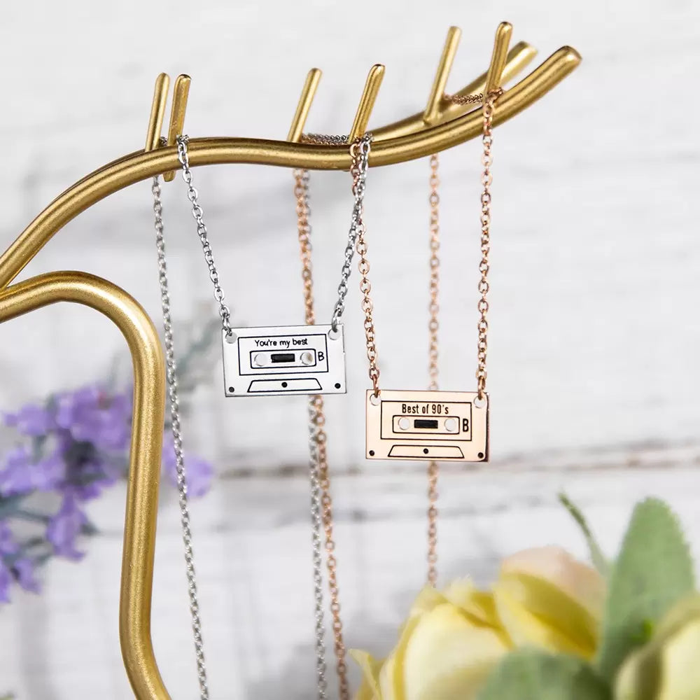 Feel the 80s love! This cassette tape necklace is the perfect way to show someone special that they are your song. Customize with your own special text and give them a unique and fun necklace that they won't find anywhere else. Give the gift of music, love, and style!