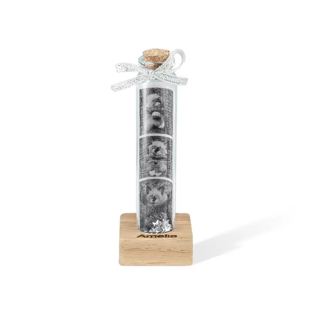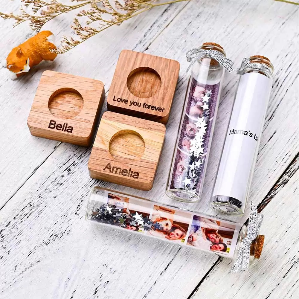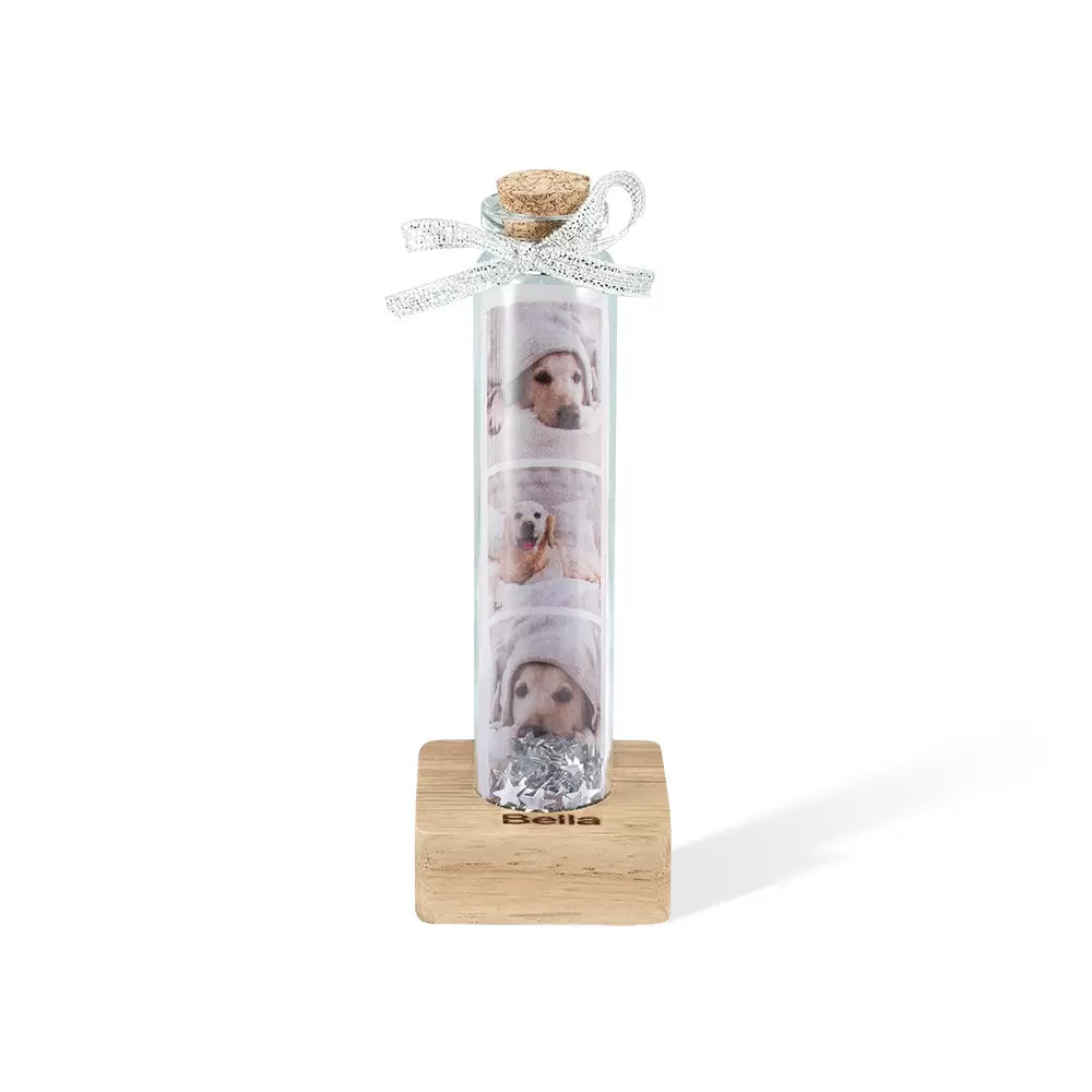 Personalization - Each personalized photo booth features three of your cherished pet photos on the front and touching message can be added on the back of the photo. You can also add a wooden display stand and engrave a short message on it to create a beautiful souvenir gift.