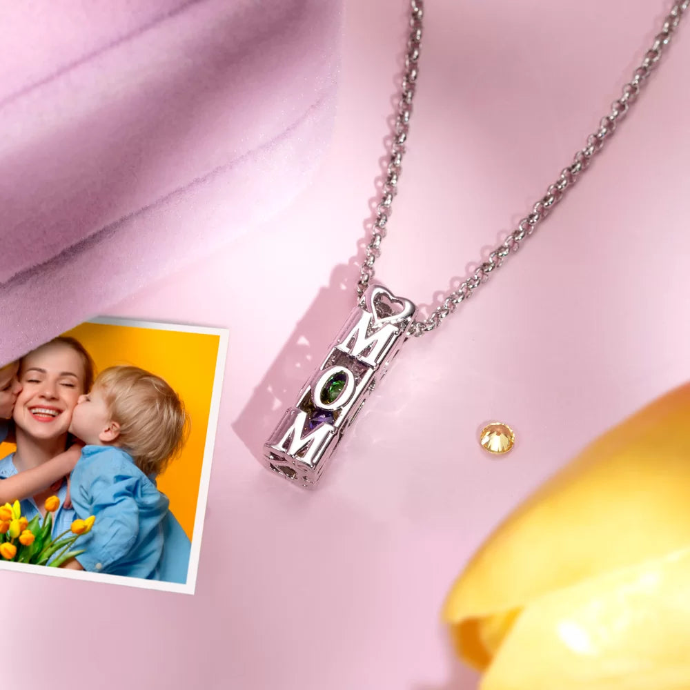 Celebrate the unconditional love of a mother with our family birthstone necklace for mom, customizable with up to 8 birthstones can be placed in this necklace. This exquisite necklace is thoughtfully designed to honor moms worldwide, featuring two elegant spelling options: Mom and Mum pendant.