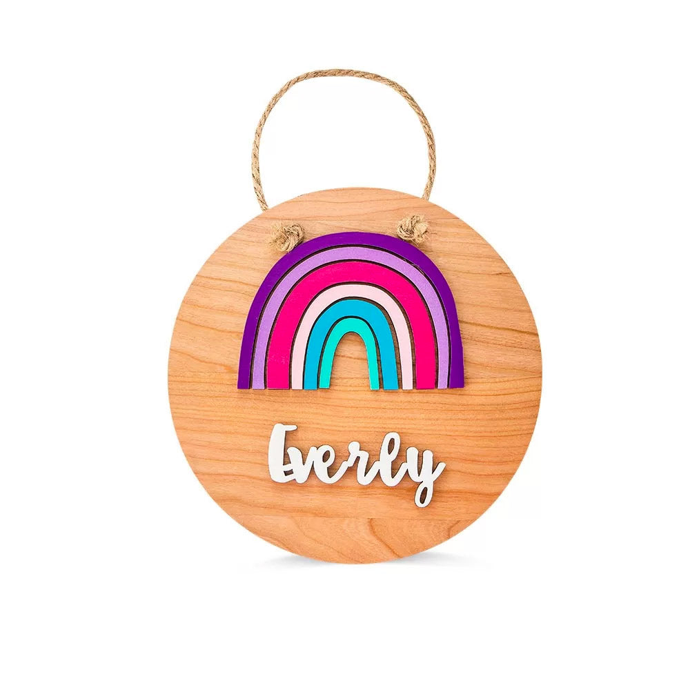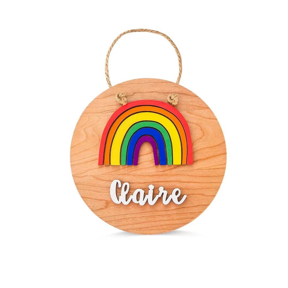 Make your child's room brighter and more special with a personalized rainbow name sign! Crafted from wood, the sturdy design is sure to be a treasured addition to your child's room.
