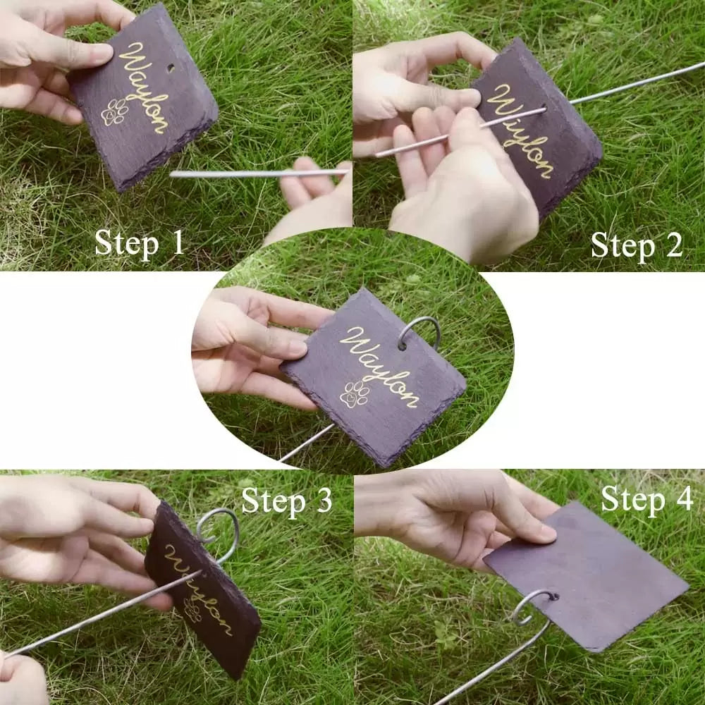 ♥  Your custom engraving is achieved with a high-quality black vinyl, tough against cold and inclement weather. As every slate is unique, it hangs perfectly from a metal hook, great for showing off in planters, pots, and gardens.  Please note that, as it's natural, slate may exhibit some irregularities.